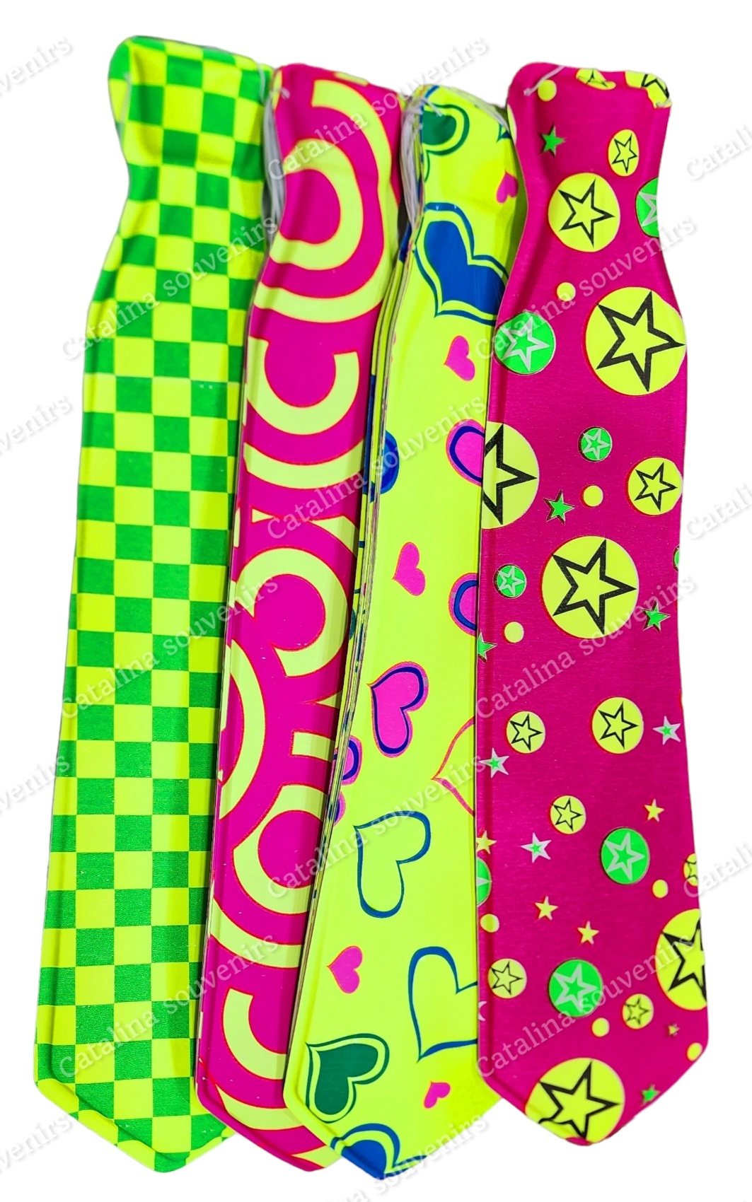 Inicio Cotillón CORBATA PLÁSTICAS FLÚOR LISAS, ESTAMPADA x12und